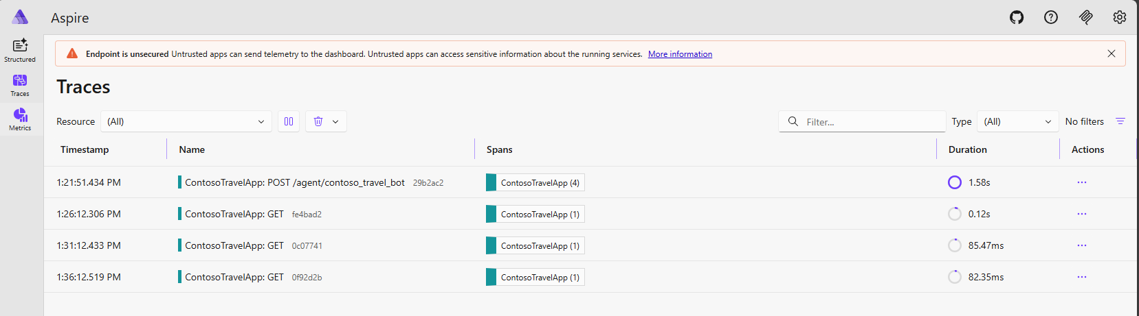 Aspire Dashboard Overview¶