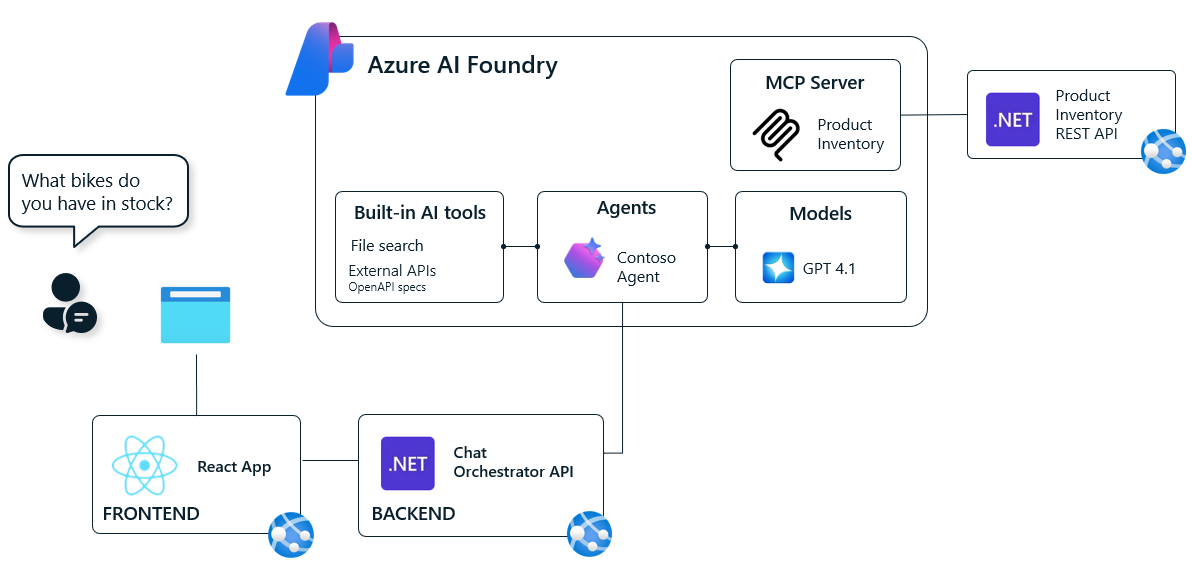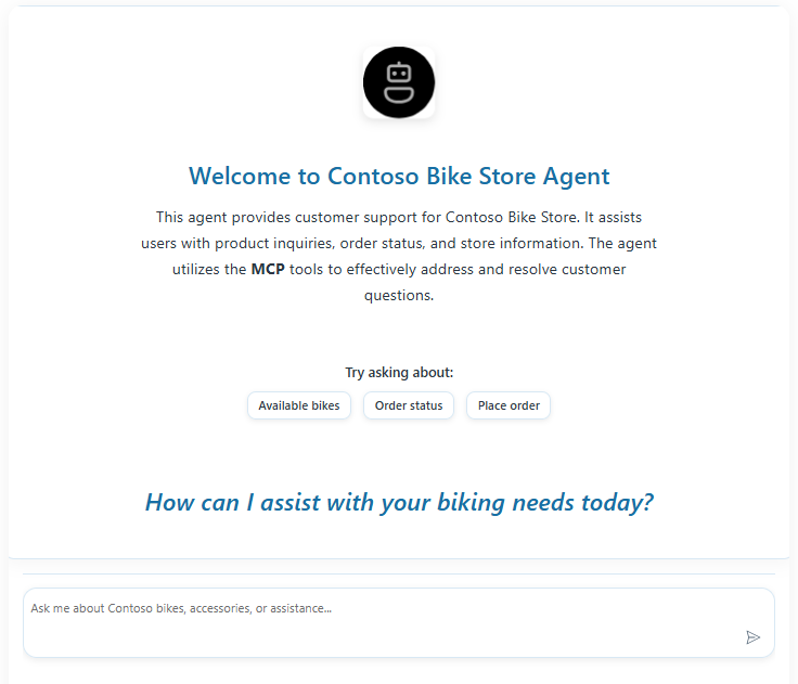 It walks through a building an AI assistant solution for Contoso Bike Store that demonstrates the use of MCP (Model Context Protocol) tools with Azure AI Foundry Agents.